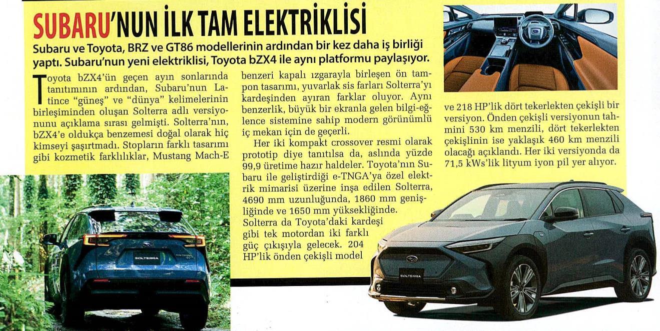 Subaru'nun İlk Tam Elektrikli Modeli: SOLTERRA